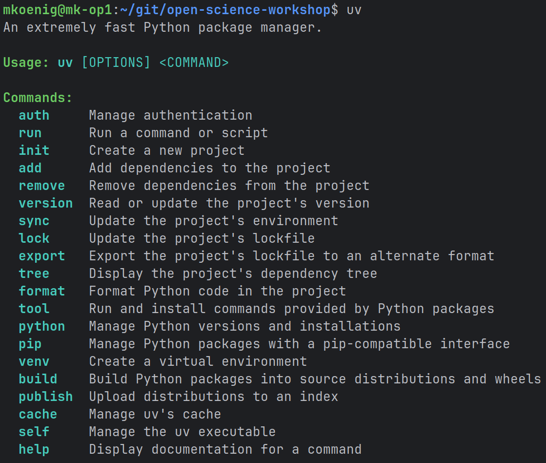 To demonstrate some of the functionality of uv we will use the workshop repository. Use a git client such as GitHub Desktop to get the latest code.